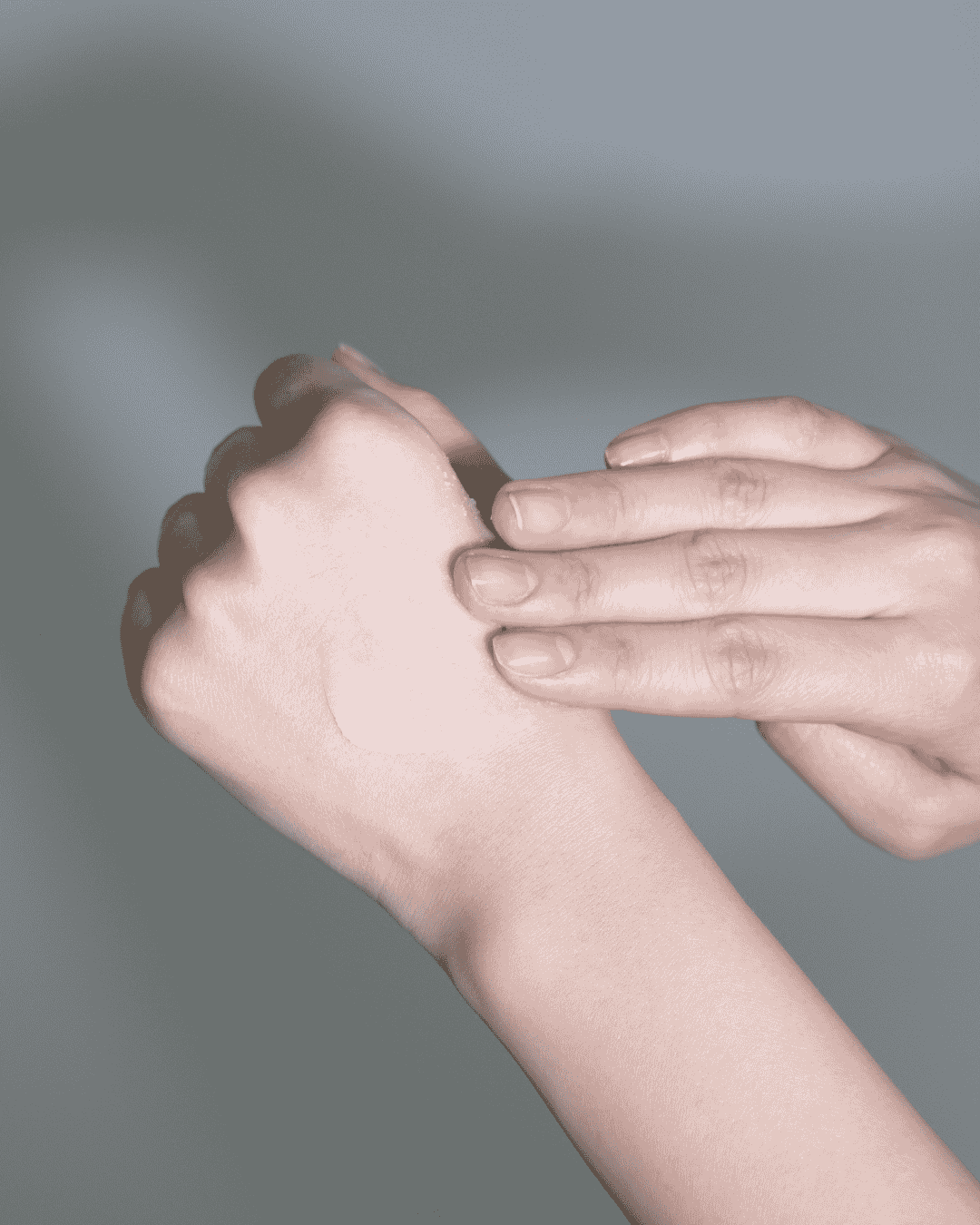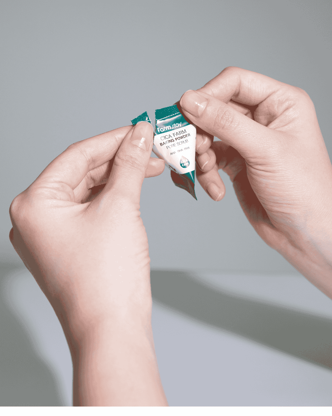 - Gently massage in circular motions, allowing baking powder and cellulose granules to polish away dead skin and impurities.